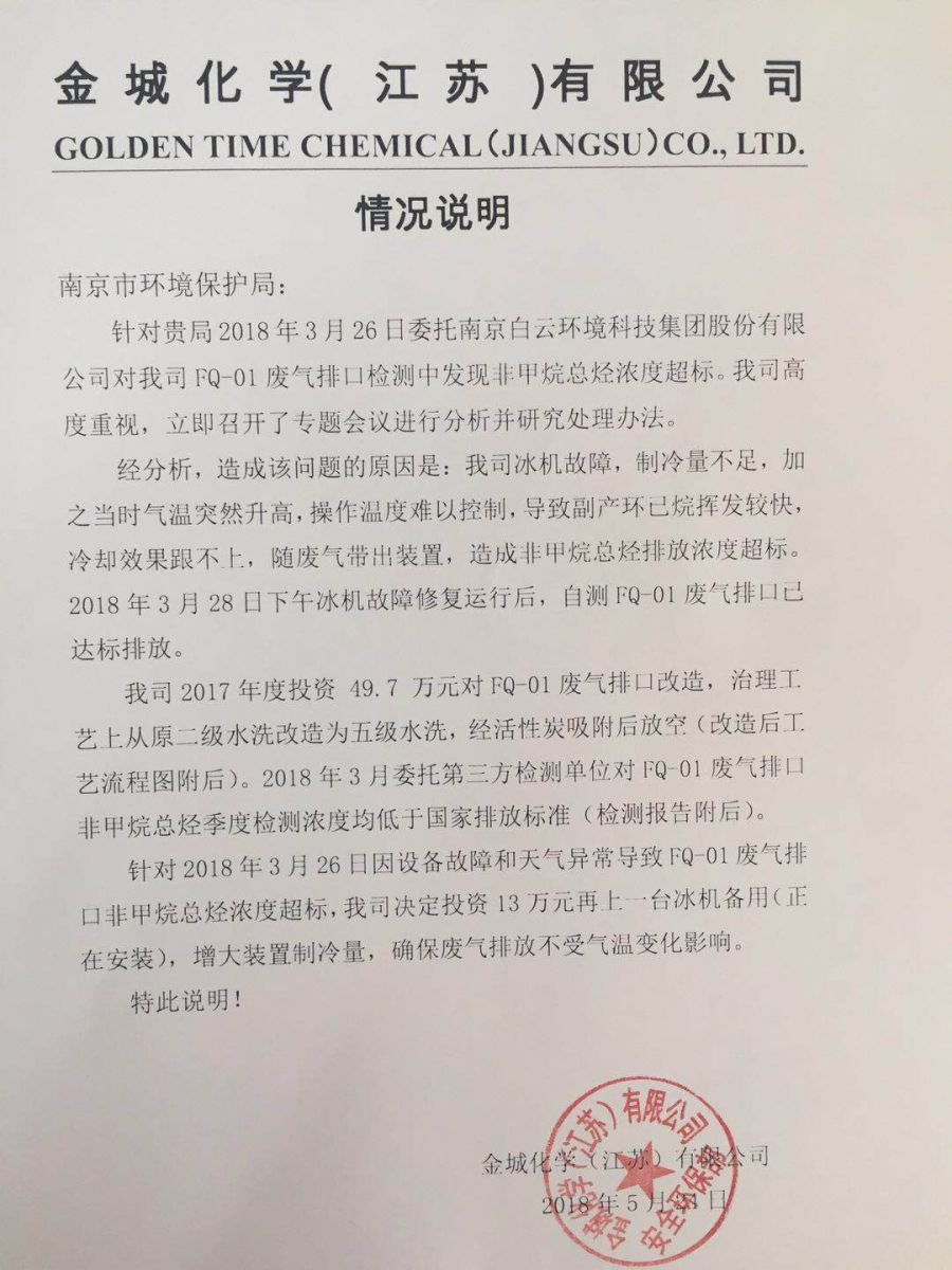 環(huán)己胺裝置排口超標(biāo)情況說(shuō)明